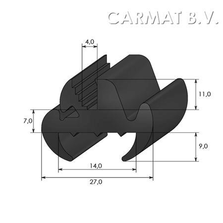 Peesrubber profiel tbv machinebouw, voertuig en schip. Voor maatvoering zie afbeelding.