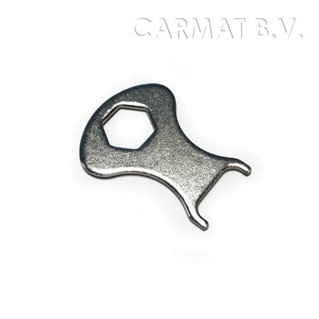 Sleutel ten behoeve van het monteren van de tenax bout in de ondergrond, hout of polyester. De sleutel bestaat uit vernikkeld staal.